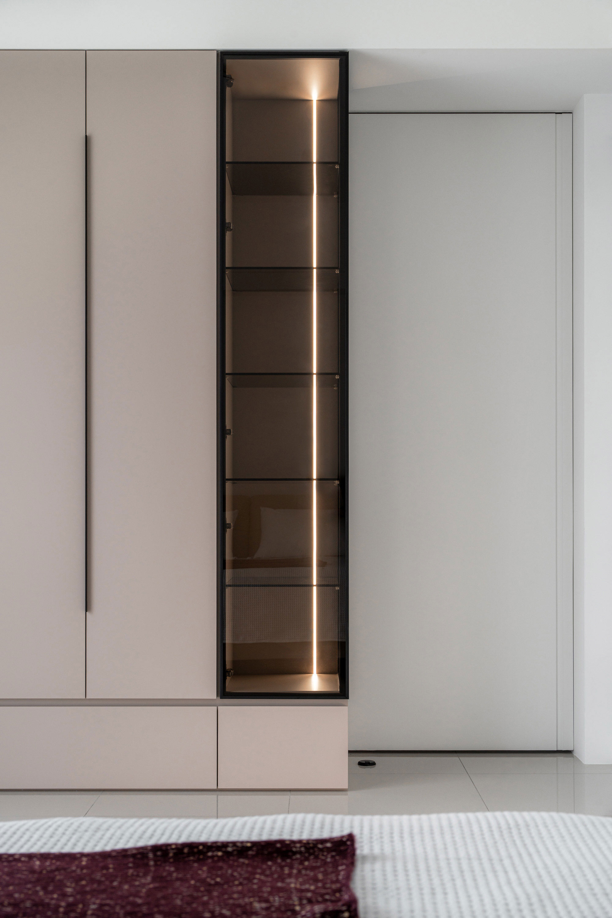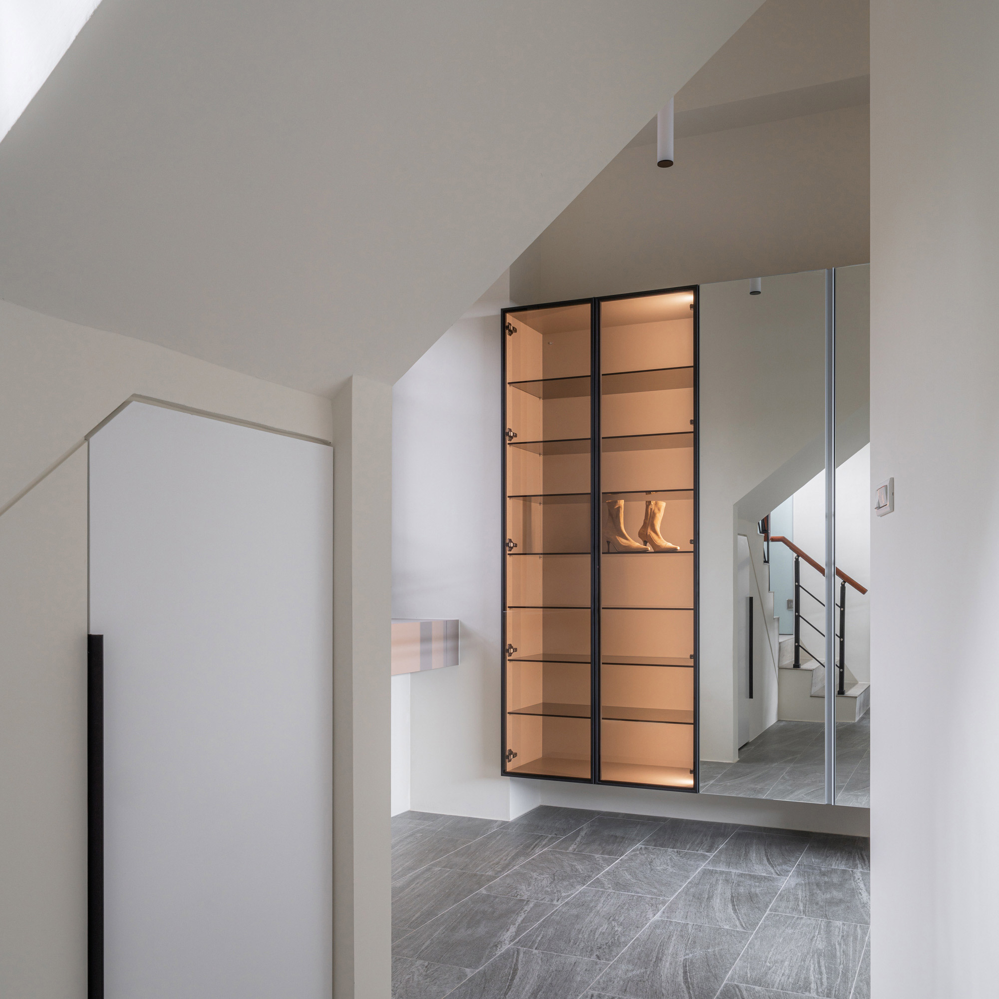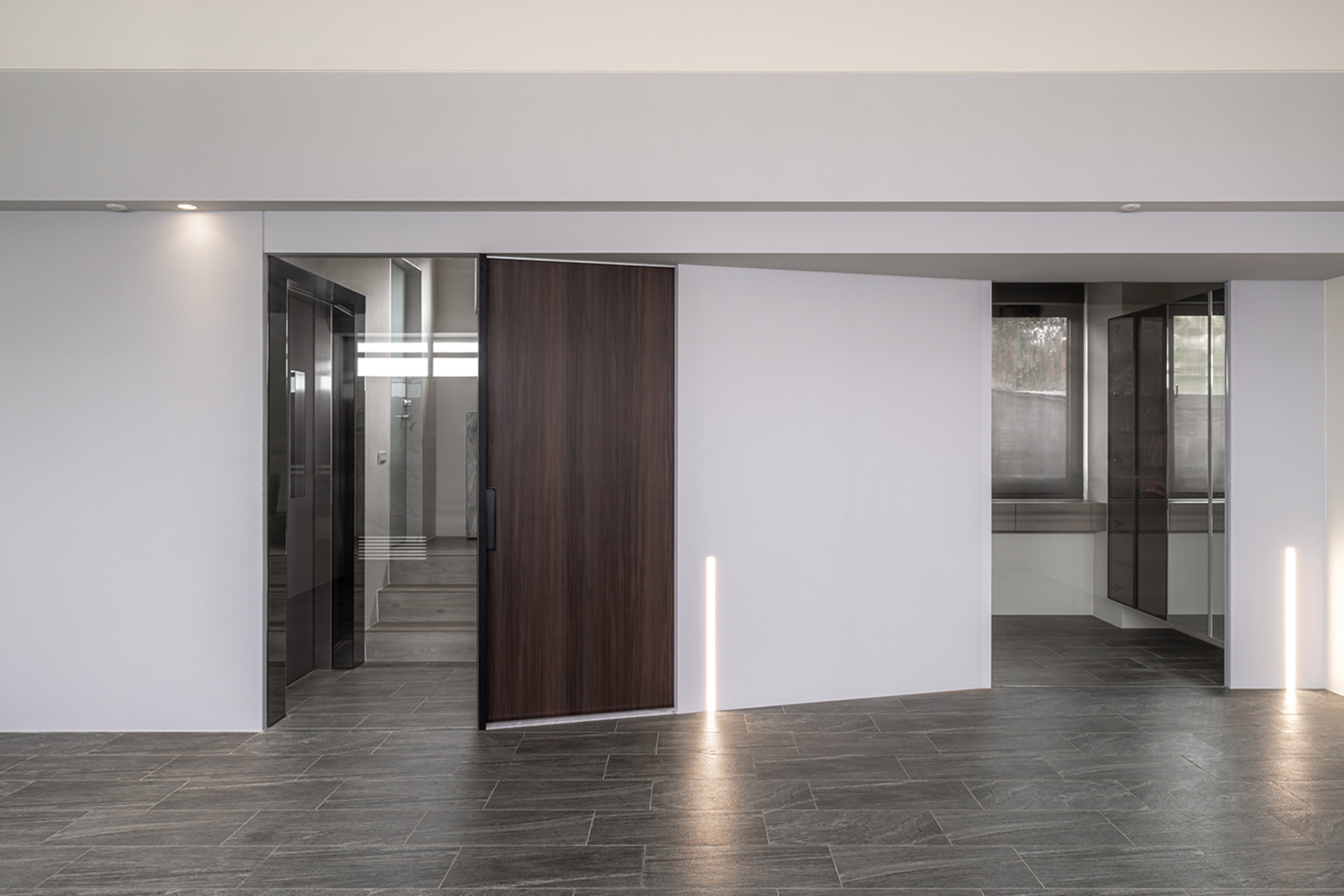 室內以低彩度、高質感的材質鋪陳,搭配簡潔俐落的線條語彙,營造沉穩且具包覆感的生活場域,形塑一處如隱士山居般的心靈居所。