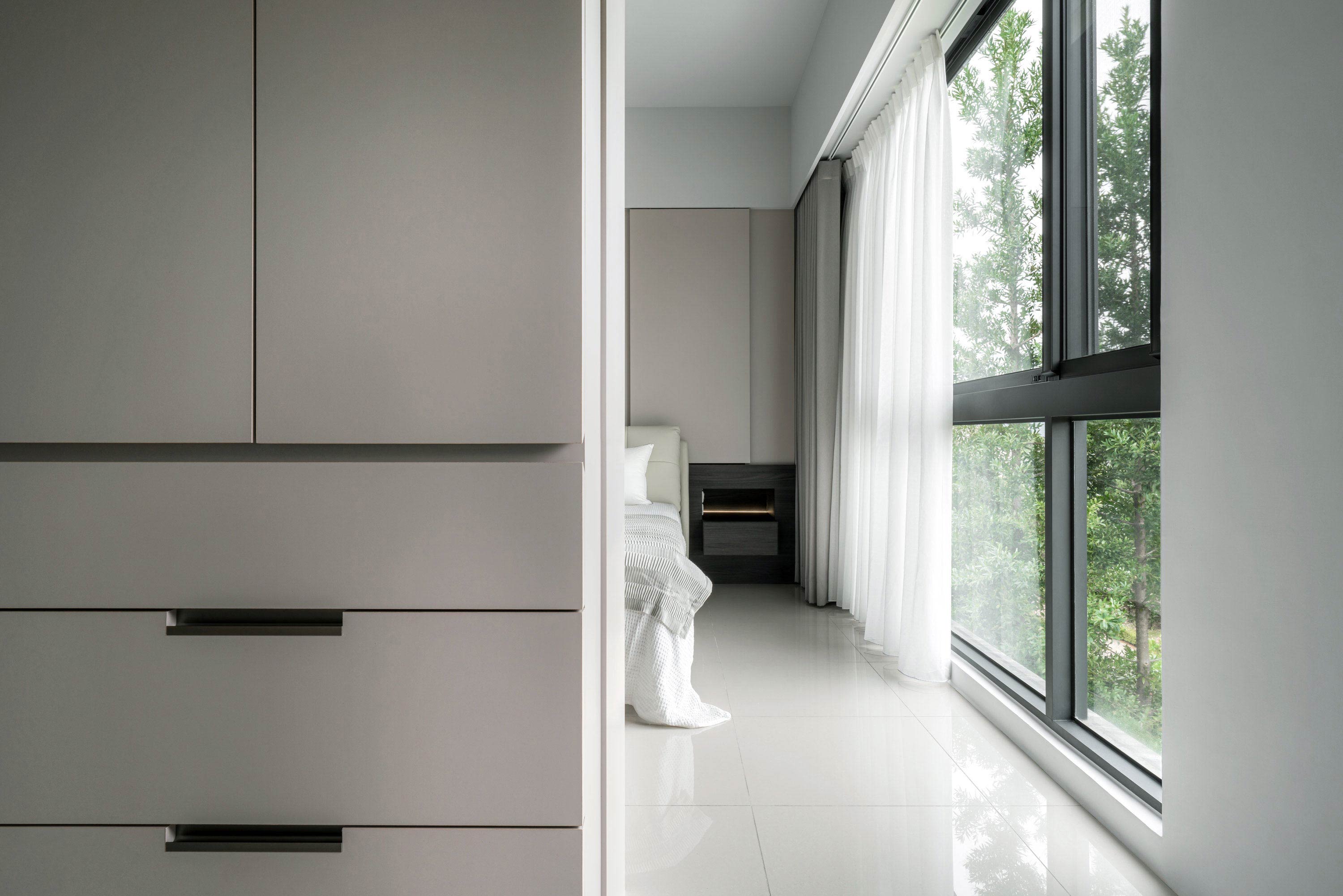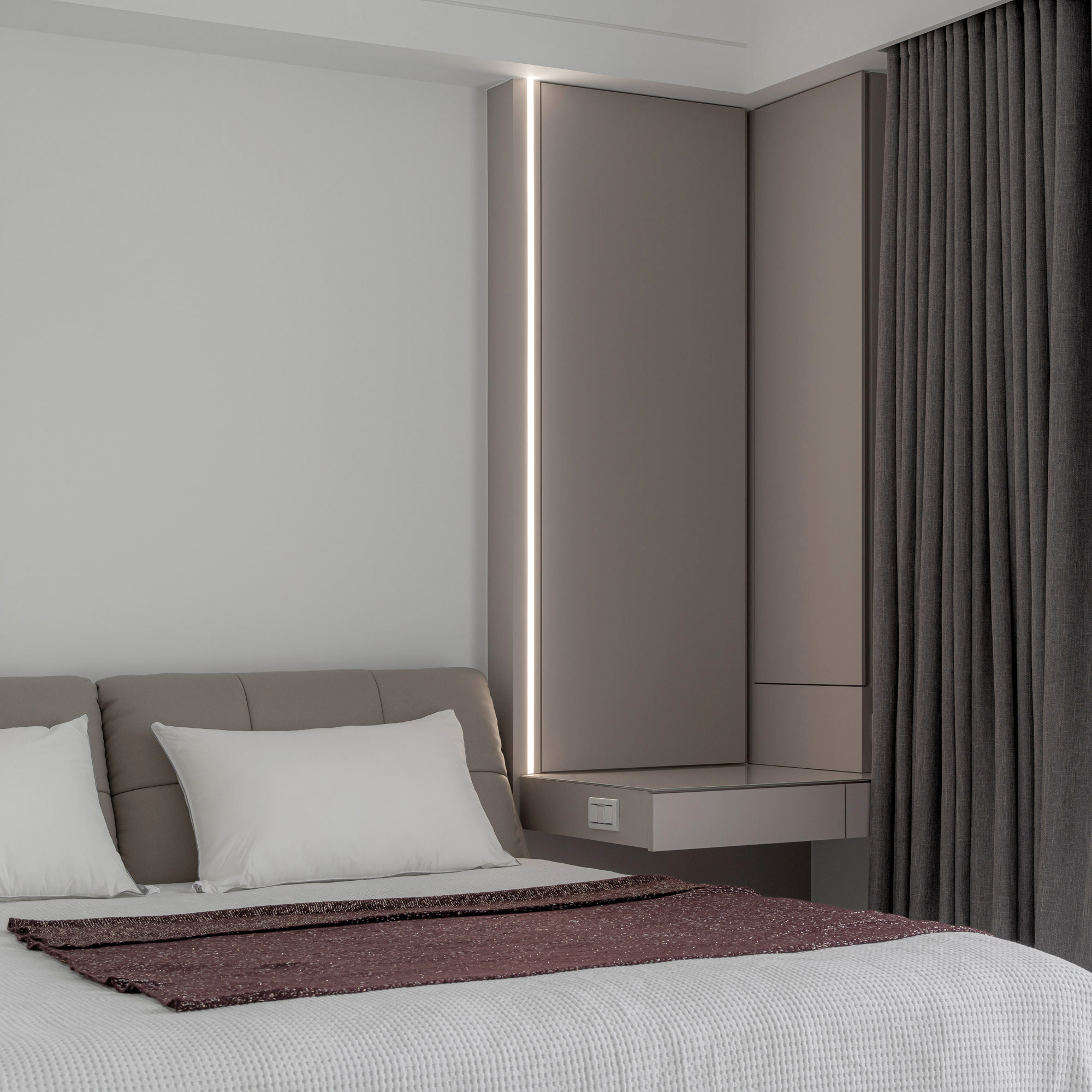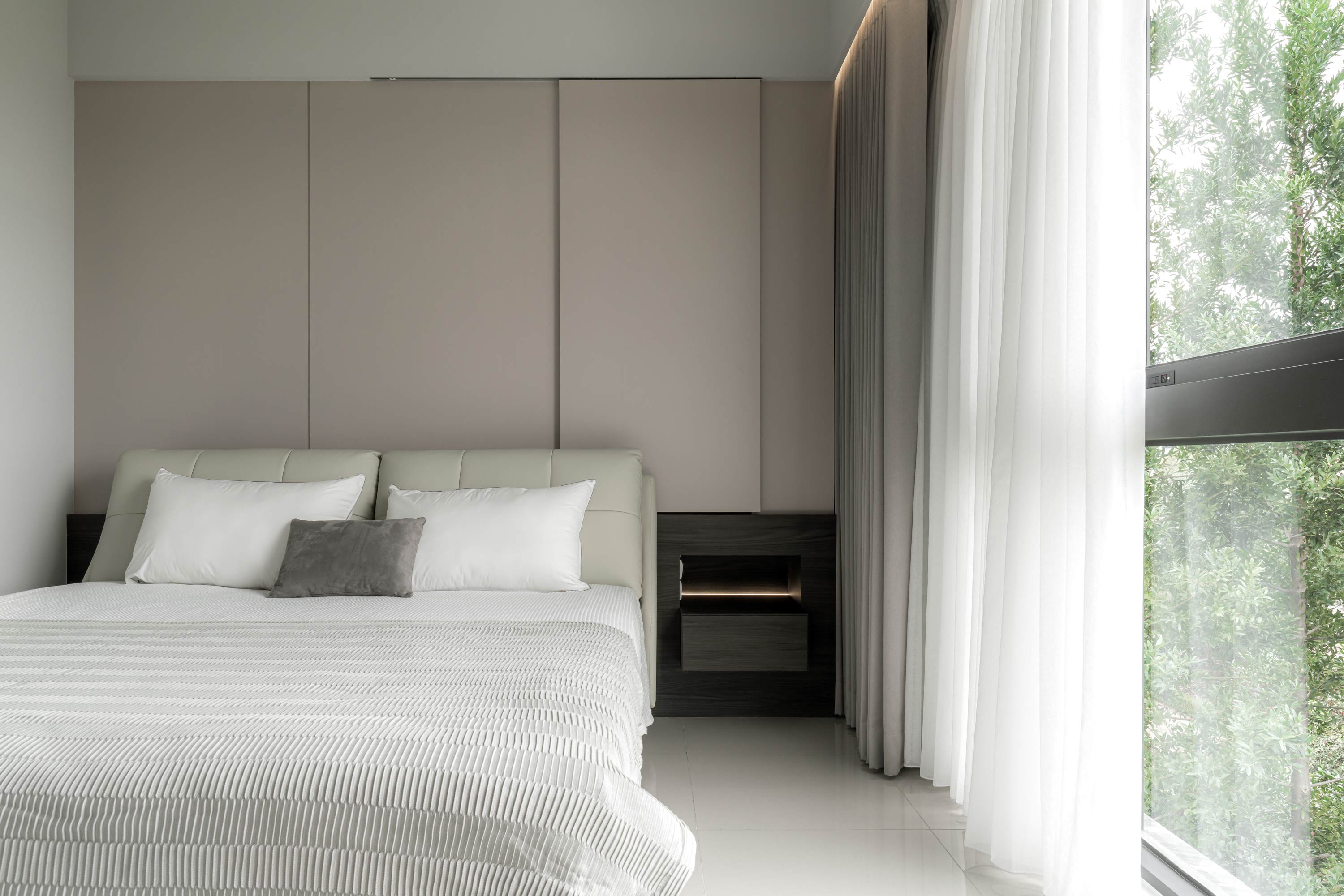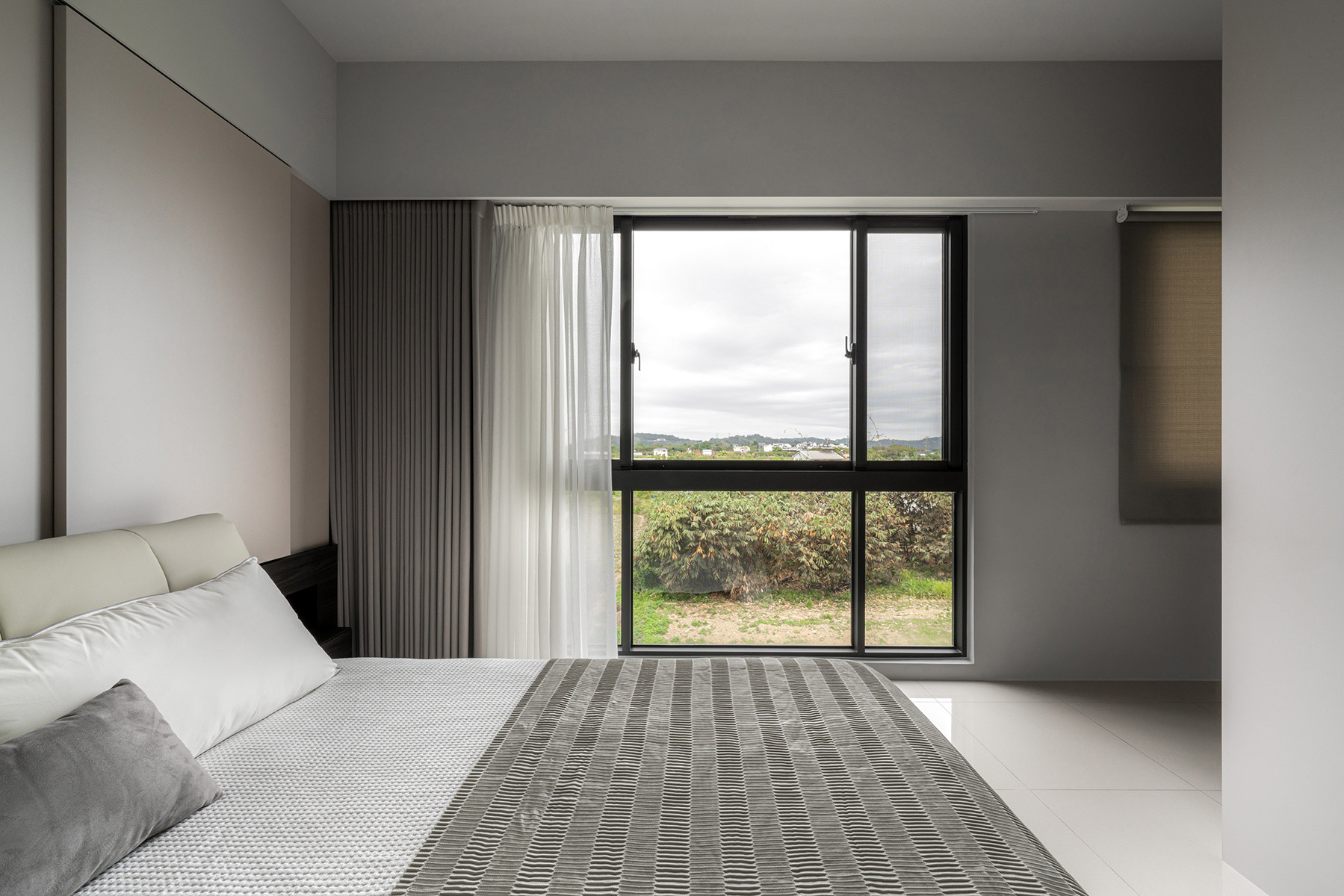 採光規劃上,結合透光簾與遮光簾層次配置,保留日間自然光的柔和流動,夜間亦能維持私密與靜謐氛圍。